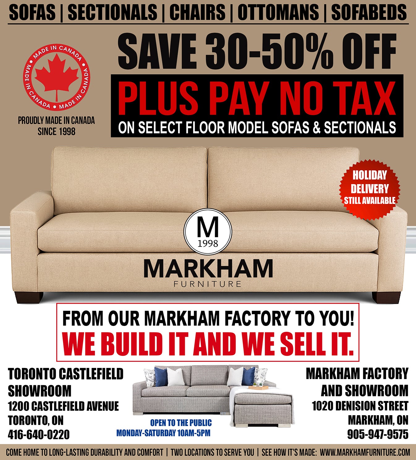 Markham Furniture was recommended by a friend who had several neighbours who had purchased their furniture and were very pleased. I ordered a loveseat and a sofa and could not be happier with them. Excellent quality and love the fact that they are made here by a Canadian owned business.